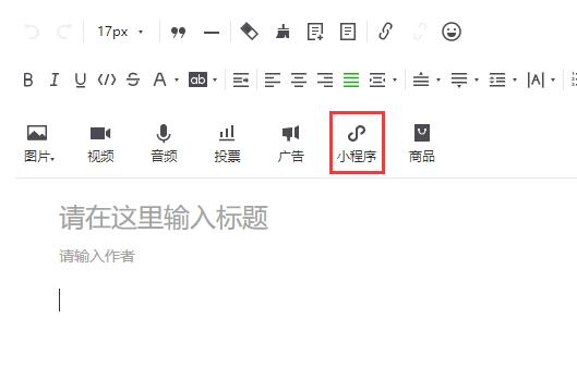 - 进入微信公众平台,编辑需要加入小程序的文章。